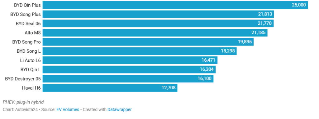 Cele mai bine vândute PHEV-uri în China